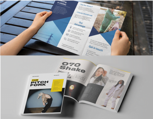 Marketing a brand through tangible pieces of information (such as pamphlets and business cards) that state the products or services available.